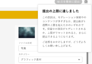 ③1週間あたりの投稿と審査中の画像枚数に制限がかかり、上限に達したら一時停止になりますよ。
